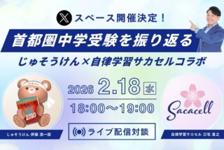 2026年2月18日(水) 18:00~19:00に、 「2026年 首都圏中学受験を振り返る」 をテーマに、じゅそうけん伊藤滉一郎と自律学習サカセル三宅貴之がX(旧Twitter)のスペースにて対談を実施します。 もちろん台本ナシの…