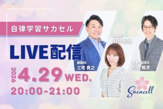 自律学習サカセルでは、2026年4月29(水・祝)の 20:00~21:00に、 「どう過ごす? 中学受験生のGWの過ごし方」 をテーマに、三宅先生・村井先生・松田先生の3人のトークライブを配信します。 ゴールデンウィークの学習は、学年や…