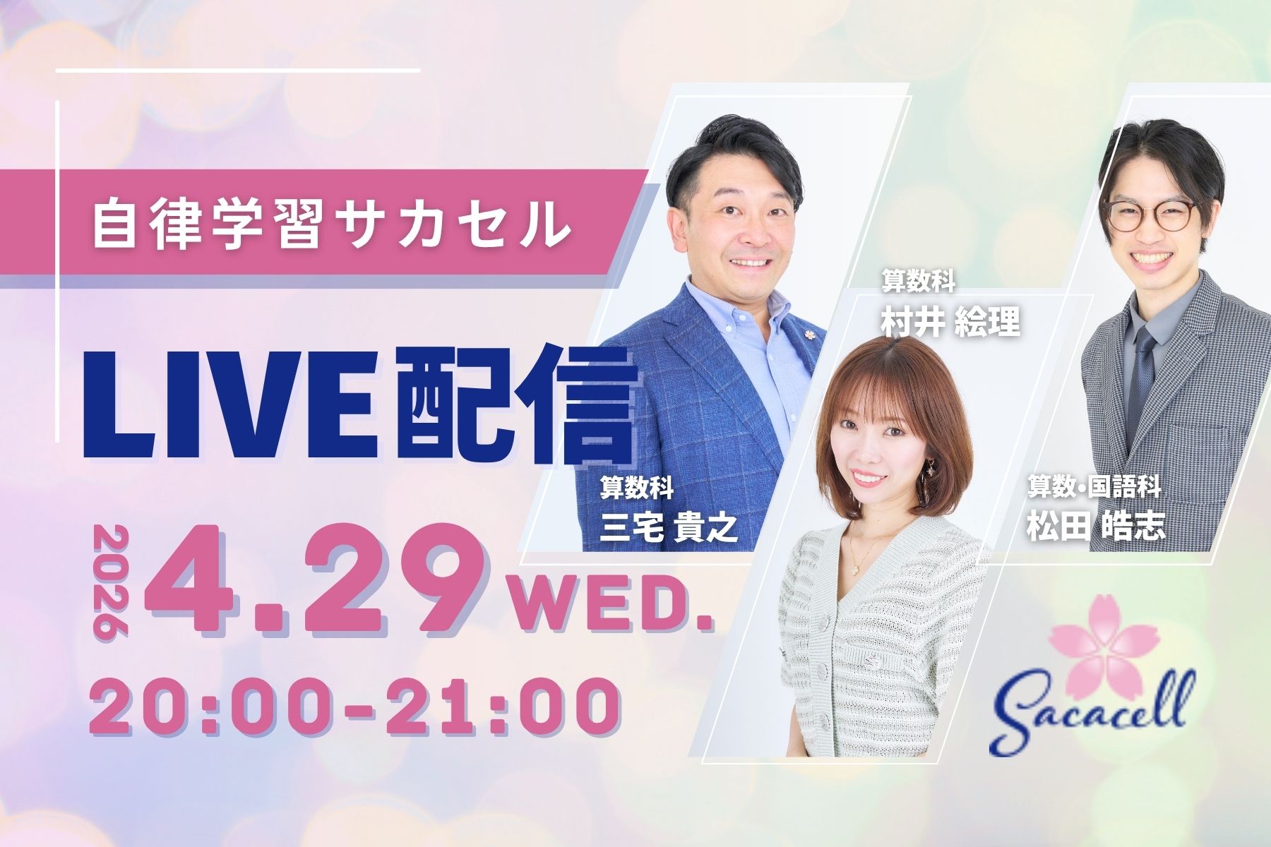 自律学習サカセルでは、2026年4月29(水・祝)の 20:00~21:00に、
